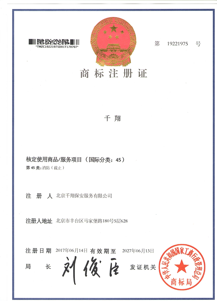 北京千翔保安服务有限公司是一家专业的安保企业,成立于2009年,总部位于北京,注册资金(人民币)6003万元;现有13家分公司,主要从事大型公共场所的安全检查、安全防范;为企事业单位提供秩序维护;为社会知名人士提供特卫服务,特卫队员均来自特警部队的转业军人。千翔保安公司是国家安全政策委员会理事单位,曾荣获第29届奥运会安保服务提供商;2009年被评为特许经营A级企业;国庆60周年安保勤务先进单位;2012年度荣获首都先进保安服务公司;2014年APEC雁栖岛主会场安保服务唯一供应商;2015年先进保安公司;2016年荣获北京市委社会领域先进基层党组织;2017年“一带一路”国际合作高峰论坛(雁西岛主会场)保安服务唯一供应商,政府采购指定供应商等多项荣誉称号。现服务10余家全球50强企业;千翔保安的愿景是:展望未来、让我们共同携手,为创建安全、舒心的工作和生活环境而努力奋斗!